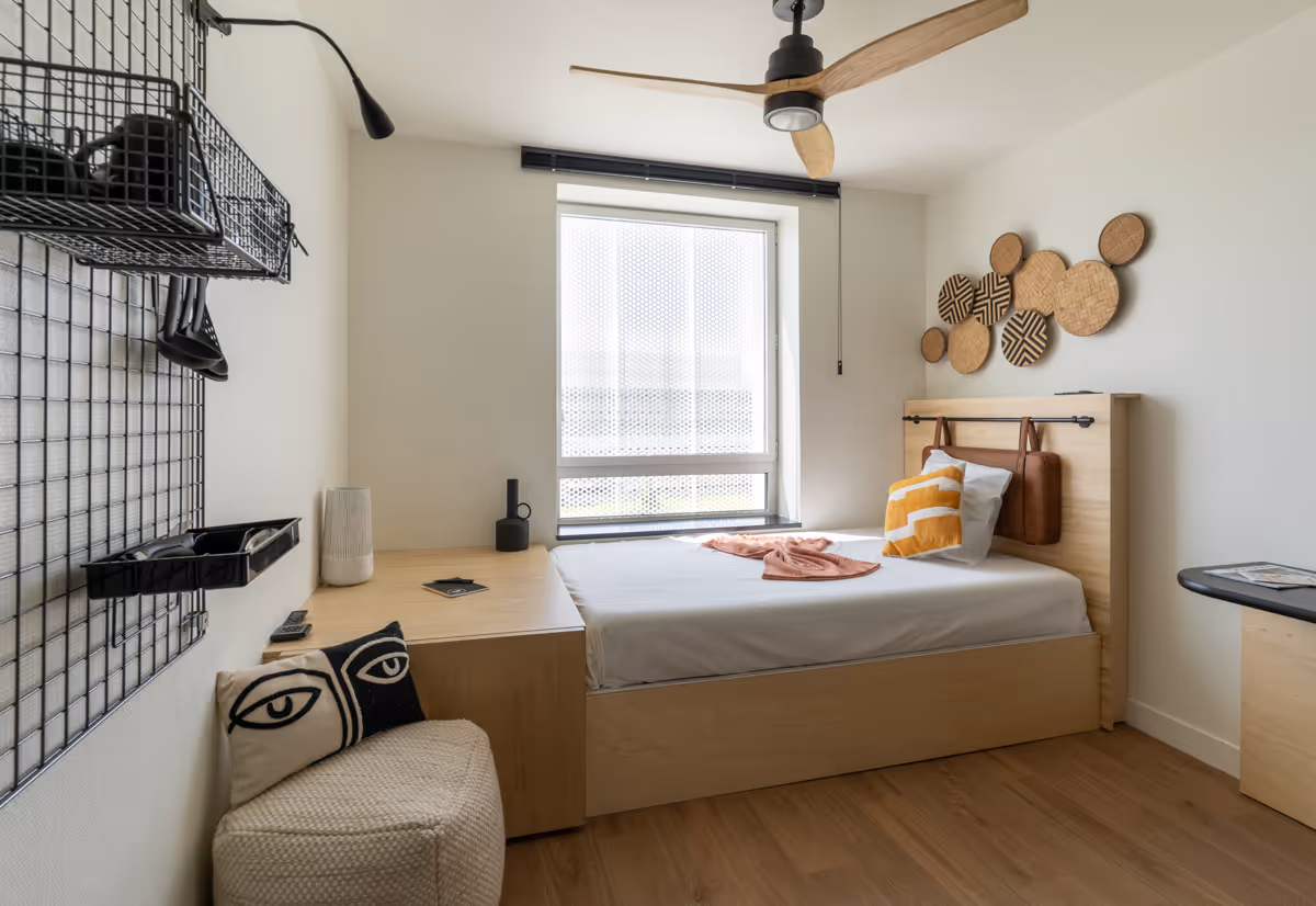 Studios et appartements entièrement meublés, avec kitchenette équipée, salle de bain privative, wifi haut débit, et accès à tous les services de la résidence.